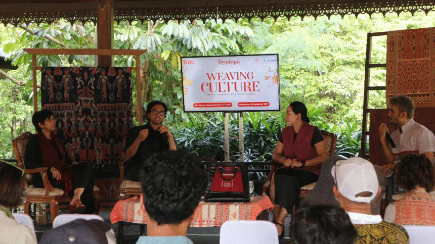 Sesi diskusi dipandu oleh Joshua Matulessy (JFlow) dan menghadirkan Putu Laura, Aparna Saxena, serta Arka Irfani (Founder Bell Living Lab). Panelis menekankan pentingnya menghadirkan tenun dalam bentuk produk turunan yang fungsional bagi generasi muda tanpa kehilangan nilai budaya.