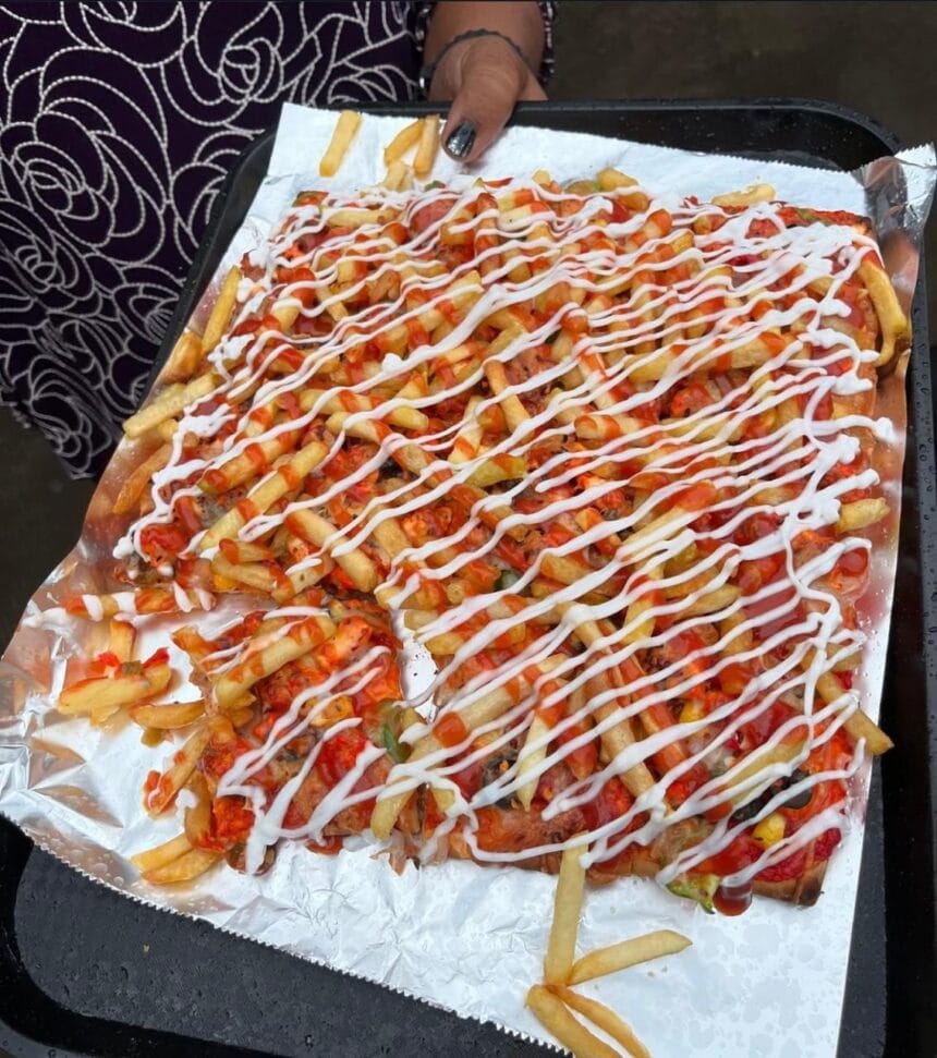 Kreator konten @pune_food_blogger membagikan video tentang makanan viral yang berisikan pizza berbentuk persegi panjang. Pada umumnya, pizza memiliki topping seperti sayur-sayuran, daging, saus pizza, keju dan sebagainya. Sejumlah topping yang disebutkan memang tetap ada. Namun, yang berbeda adalah penambahan kentang goreng, sayur-sayuran mentah, veggie mayo dan saus lainnya di atasnya. Sehingga dari konten ini mempertanyakan apakah rasanya akan lezat atau tidak.