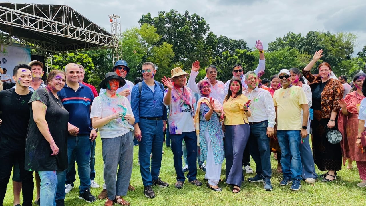 JAKARTA, 17 Maret 2025 – Festival Holi digelar di Taman Buperta Cibubur, Jakarta pada Sabtu (15/03/2025). Festival penuh warna yang meriah ini diikuti oleh ratusan pengunjung. Duta Besar India untuk Indonesia, Sandeep Chakravorty, hadir dalam acara tersebut dan mengapresiasi India Club Jakarta atas diselenggarakannya perayaan Holi terbesar di Jakarta. Dalam sambutannya, Dubes Sandeep mengatakan bahwa Holi adalah festival inklusif yang merayakan kebahagiaan, kebersamaan, dan warna, serta mengingatkan bahwa semangat Holi harus terus dipertahankan sepanjang tahun. Acara ini juga dihadiri oleh beberapa duta besar dari negara lain, yakni Duta Besar Italia, Swedia, dan Argentina.