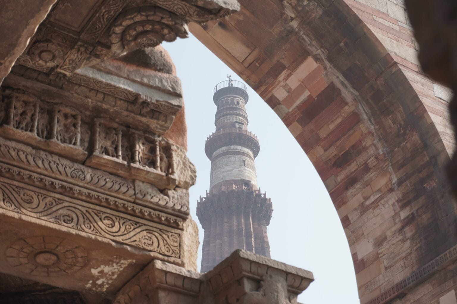 Qutub Minar dibangun pada awal abad ke-13 dan menandai berdirinya Delhi sebagai pusat kekuasaan Islam. Menara setinggi hampir 73 meter ini dikelilingi kompleks bangunan kuno, termasuk reruntuhan Masjid Quwwat ul Islam dan Tiang Besi yang dikenal karena ketahanannya terhadap karat selama lebih dari seribu tahun.