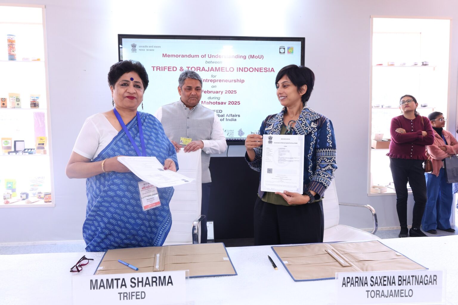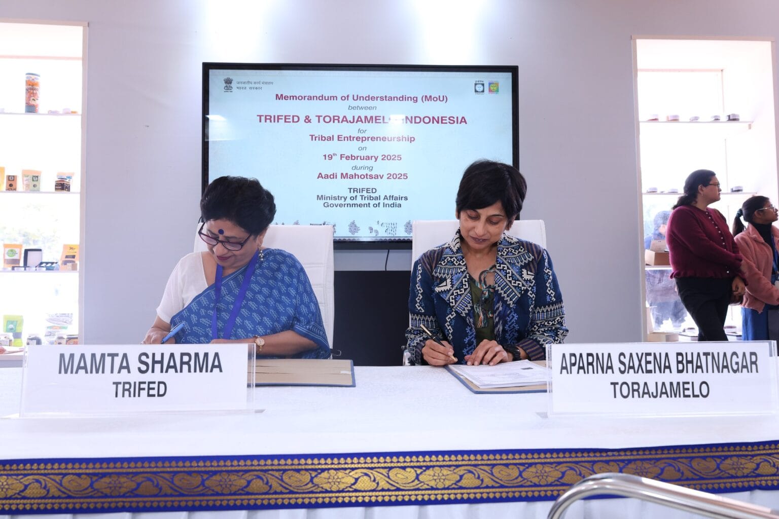 JAKARTA, 12 Maret 2025 – TRIFED meneken MoU berisi kemitraan strategis dengan Reliance Retail, HCL Foundation dan Torajamelo Indonesia. Ditandatangani pada 19 Februari 2025 dalam acara “Aadi Mahotsav”, MoU ini bertujuan untuk meningkatkan pemasaran produk suku dari pedesaan India secara nasional dan internasional.