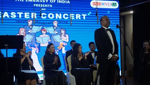 Deputy Chief of Mission (DCM) India, Bijay Selvaraj, dalam sambutannya, menceritakan bagaimana konser ini berawal dari ide sederhana membawakan lagu-lagu Natal, yang berkembang menjadi konser Paskah penuh skala.