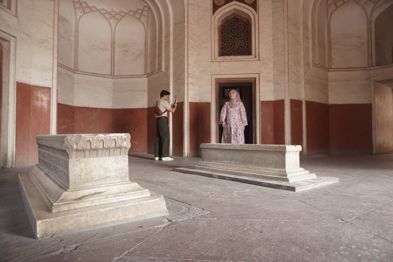 Selain bangunan utama, kompleks Humayun’s Tomb juga menaungi sejumlah makam anggota keluarga kerajaan dan pejabat penting. Setiap sudut menyimpan detail yang menarik untuk diamati, mulai dari ukiran batu, pola lantai, hingga kisi-kisi yang memungkinkan cahaya matahari masuk secara dramatis ke dalam ruang.